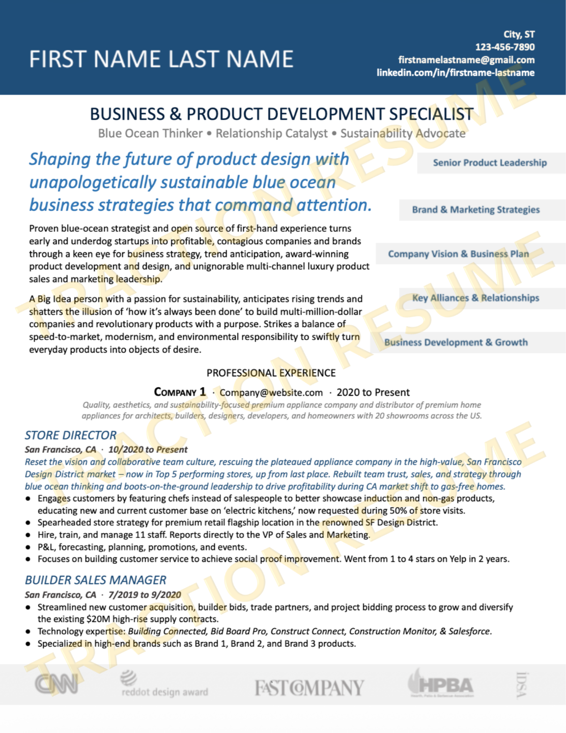 I honestly have no idea where I’d be without Claire’s help and guidance. She’s a true "difference maker" and hands down the best at what she does. If you’re serious about making a major positive change in your career, don’t settle for anything less Claire Davis and Traction Résumé are the real deal.