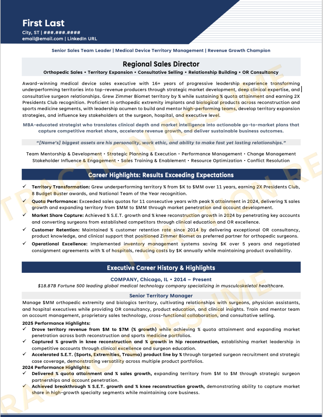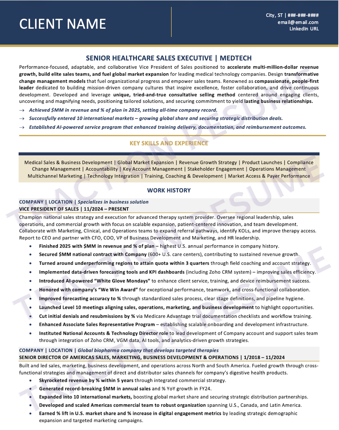 Traction Resume Samples