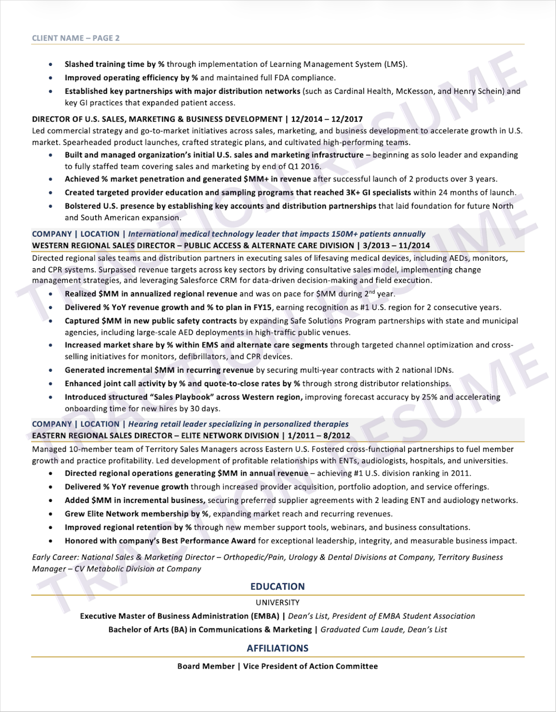 Thank you, Claire! I was just hired as the Director of Commercial Learning & Development at a great company — less than 60 days after you and your team overhauled my resume.